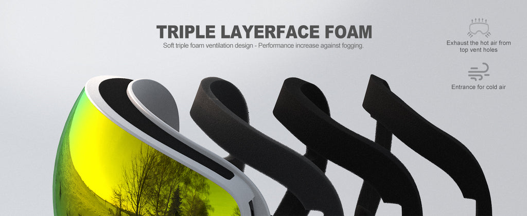 REVO Double Lens: The Lenses of Snowboard Goggles is made with double-layer and are Anti-fog, Anti-glare, and UV400 protection. The specially Revo technology on skiing Glasses protect you from fingerprint and scratch, let you enjoy an ultra clear experience.
