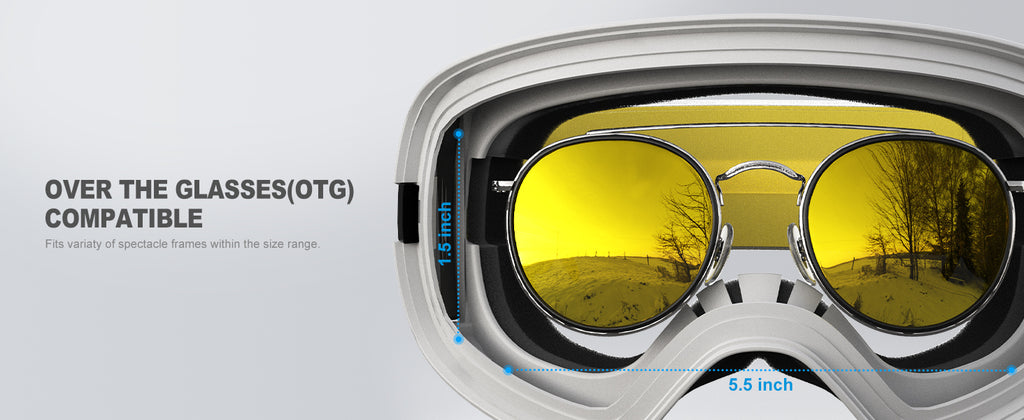 OTG (Over The Glasses) design: The Snowboard Goggles allow you to put your glasses inside, and can work as UV protection goggles for outdoor sports, with no worries about size problems.