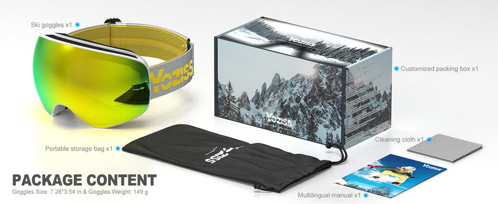 Yoziss Snowboarding goggles are windproof and glare-free for ultimate protection on slopes. Combine this Stylish frame design, suitable for skiing, snowboarding, and snowmobiling, with a protective carrying case included.